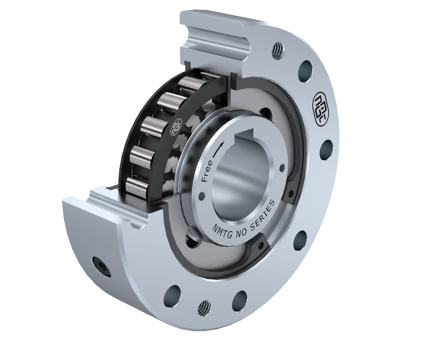 Outer race end faces have Tapped Holes for attachment of items such as Spigot Cover, Coupling, Sprocket, Pulley, etc. with Outside diameter of outer race provided location to ensure Concentricity.